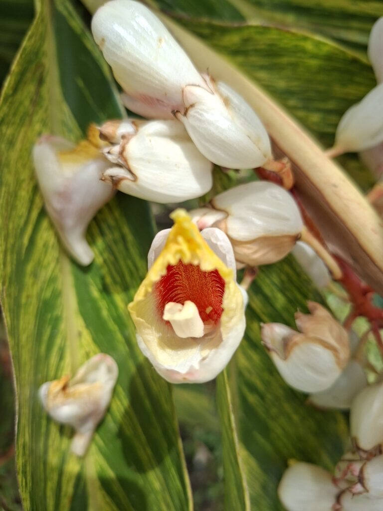 Nome popular: Gengibre-concha, colônia, alpínia.